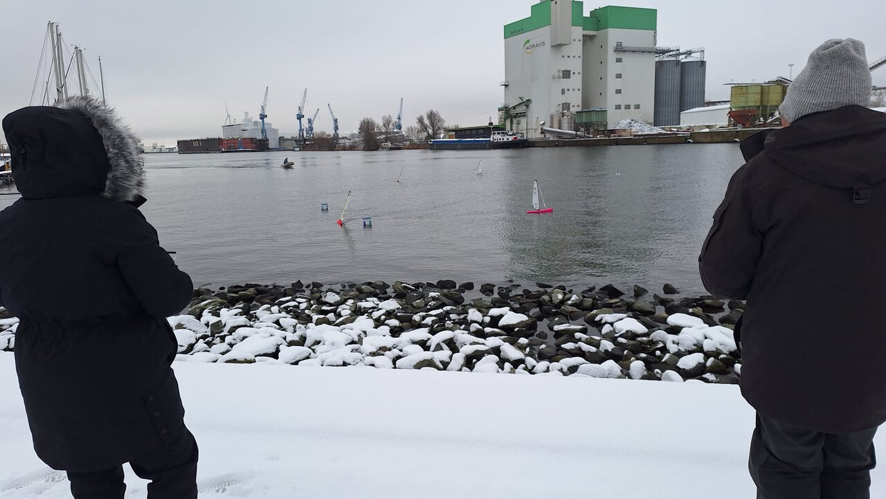 Nach der Pause drehte der Wind wieder auf westliche Richtungen; so wurde der dritte Teil der Regatta auf den Bereich vor dem nördlichen Steg gegenüber vom Hafenmeisterbüro verlegt. So konnten wir immerhin insgesamt zehn Läufe absolvieren. Die Kälte zeigte zum Schluss seine Wirkung und so haben wir gemeinsam beschlossen, die Veranstaltung am frühen Nachmittag zu beenden.